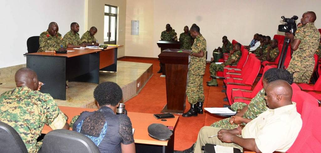 The officers at the rank of Lieutenant and Captain were arraigned before the court which sat at the military intelligence headquarters Mbuya chaired by Col. Tom Kabuye.