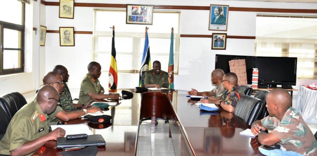 The Chief of Defence Forces, Gen David Muhoozi has Tuesday met the MONUSCO Force Commander, Lt Gen Derrick Mbuyiselo Mgwebi. The meeting took place on the heels of the 14th January 2018 recently concluded regional meeting of Chiefs of Defence Staff and military Intelligence.