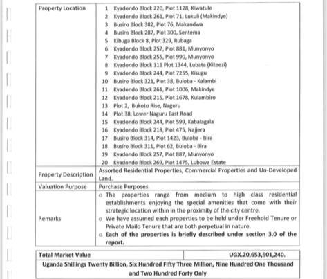 According to the leaked document, Kasekende’s properties, 20 in number, range from medium to high class residential establishments enjoying the special amenities that come with their strategic location within the proximity of the city centre.