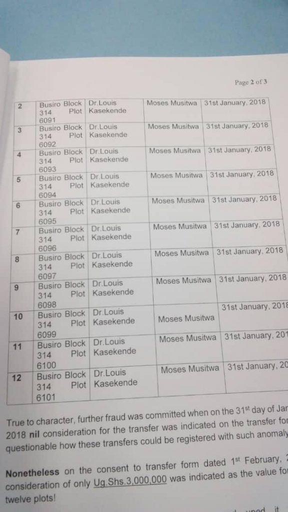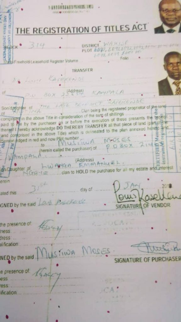 The evidence shows that Kasekende transferred the properties to Moses Misiitwa.
