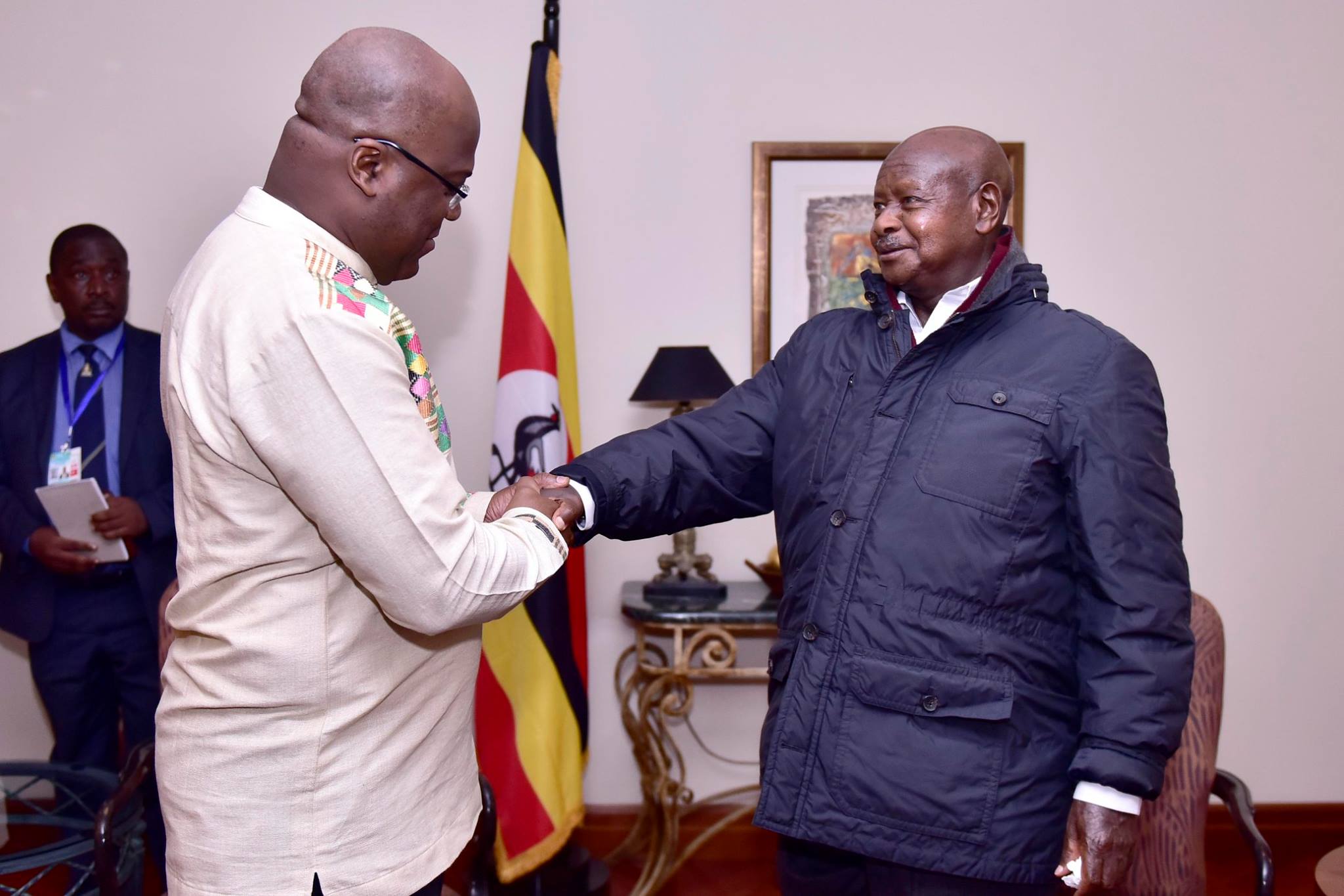 Tshisekedi met President Yoweri Kaguta Museveni at the African Union Summit in Ethiopia.