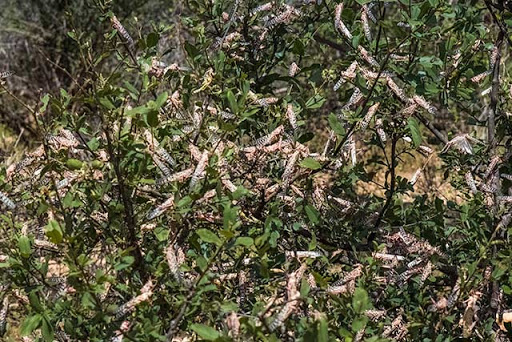 The locusts move at 100-300 kilometers per hour and can destroy 160 tons of vegetation.