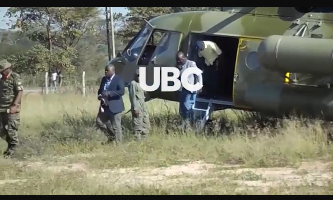 A video recording by UBC obtained by TrumpetNews shows footage of Minister Bagiire aboard a UPDF copter landing in Karamoja bushes and descending to where these insects are.