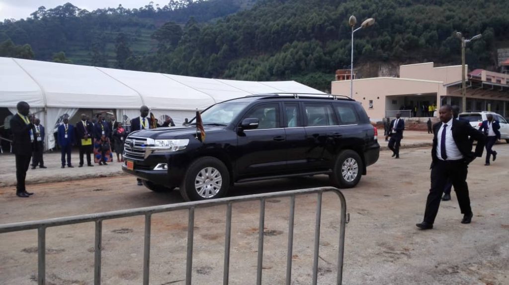 Museveni's motorcade arrives at Katuna.