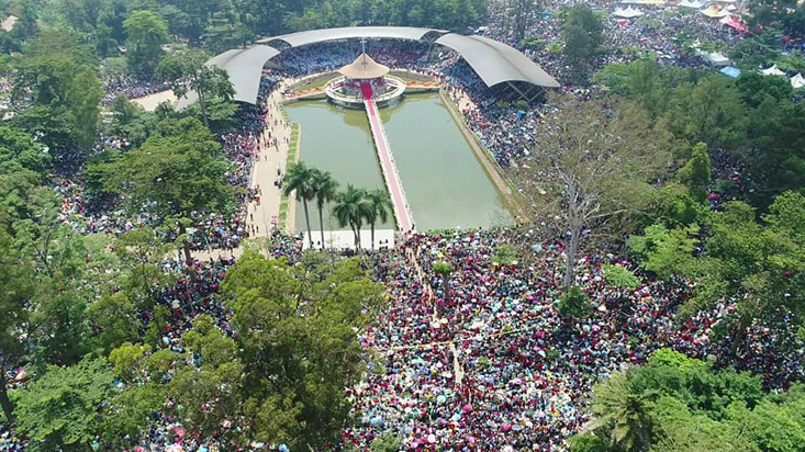 Thousands attending mass at Namugongo.