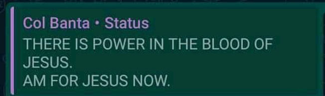 While on his phone, he responded to a few whatsapp messages and also posted on his status the following words; “There is power in the blood of Jesus. Am for Jesus now.”