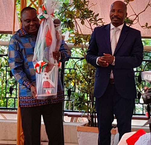 The retired fierce NRA combatant has Thursday presided over a function in Burundi capital Bujumbura where he bid farewell to a Kenyan Envoy, Amb. Ken Vitisia whose tour of duty has come to an end in the country.