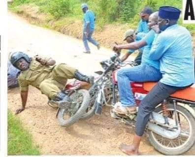 DPC Rutaagira jumped infront of the motorcycle and tried to grab Amuriat.