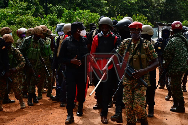 Police working together with the Military cordoned off the island, secured Bobi Wine, flew him in an army chopper to Kololo airstrip and safely drove him to his Magere residence.