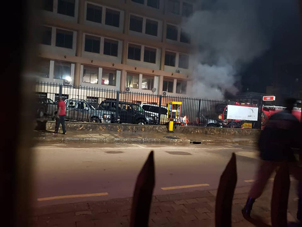 The first explosion occurred at 9pm in the city center after Georgia House which houses Uganda Registration Services Bureau (URSB) and is adjacent to CPS went up in flames.