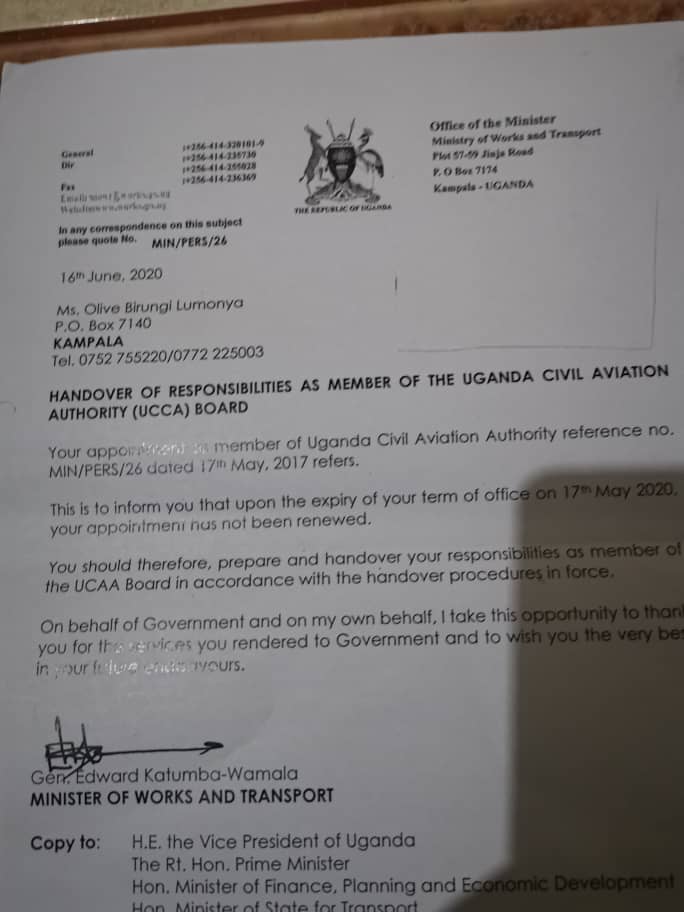 “We salute you honorable Minister and thank you for the good work you are doing for our country. Honorable Minister we have learnt that the shortlisting of candidates for the position of Director General has been done. But reliable information we have picked indicate that some of people who previously worked with Civil Aviation Authority who have known questionable integrity and poor work culture have been shortlisted”. reads part of the letter sent to Minister Katumba.