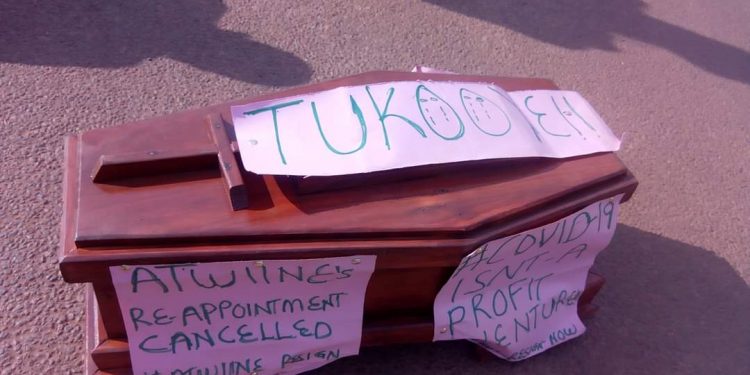 The placards on the caskets had different information which was all directed and mocking the person of Dr Atwine.