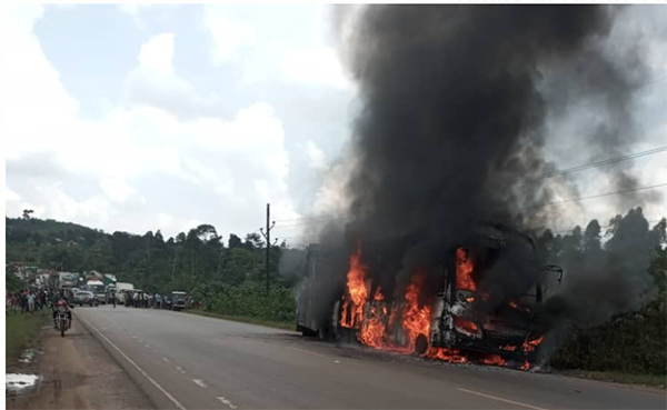 “All the 37 passengers on board are safe and managed to exit the bus before it was entirely engulfed by the fire. The actual cause of the malfunction will be communicated later,” said Faridah Nampima, the traffic police spokesperson.