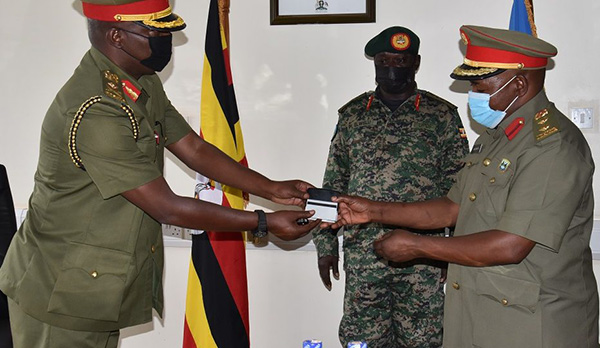 The Deputy Chief of Defence Forces (D/CDF) Lt Gen Peter Elwelu has today, in Mbuya, presided over the handover-take over ceremony of the Deputy Chief Military Intelligence; from Brig Gen Charles Asiimwe to Col Abdul Rugumayo following the latter’s appointment by His Excellency the President on the 17th March 2022.