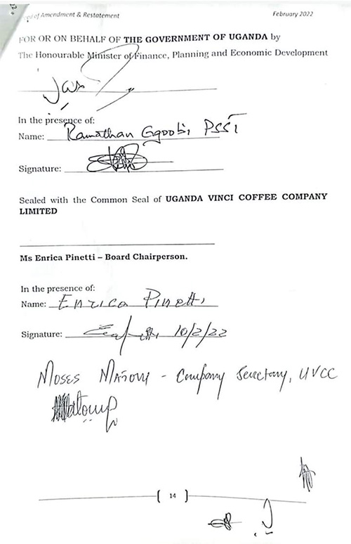 A leaked February 2022 Memorandum of Understanding (MoU) shows that the deal was signed by Finance Minister Matia Kasaija on behalf of government, in the presence of Ramathan Ggoobi, the Permanent Secretary of the Finance Ministry.