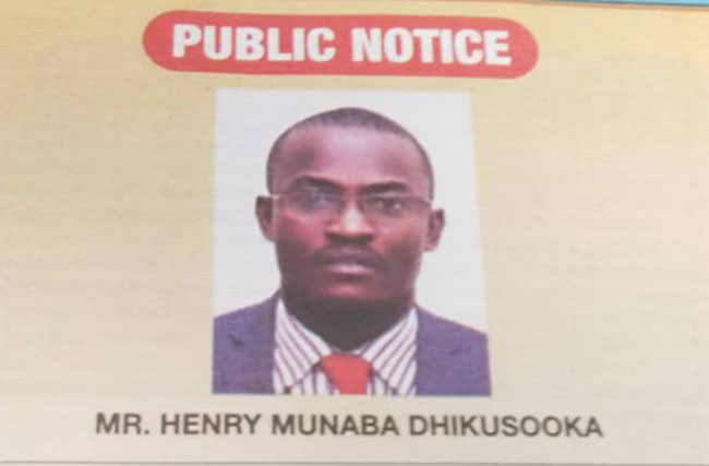 “This is to inform all stakeholders and the general public that Mr. Henry Munaba Dhikusooka formerly a Principal in Risk and Compliance Management Department whose photograph appears above, was dismissed from Uganda Bureau of Statistics (UBOS) on May 2023, on accounts of gross misconduct.