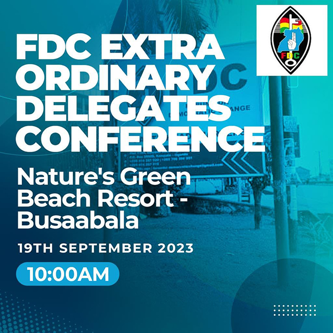 According to Harold Kaija, the FDC deputy secretary general in charge of administration, who crossed to Katonga camp, the planned delegates conference will take place on September 19 on the shores of Lake Victoria at Natures Green Resort Beach Busabala in Kampala.