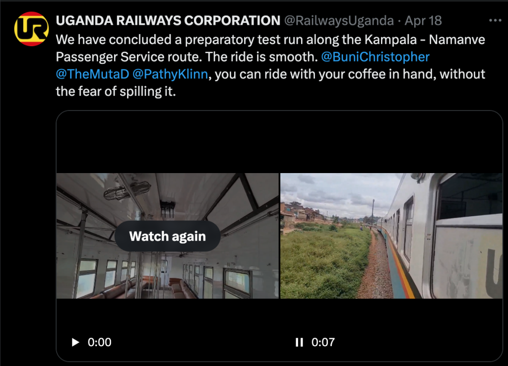 While in Uganda, URC announced the resumption of passenger trains from Namanve in Mukono district to Kampala at a cost of shs 2000 as transport fare.