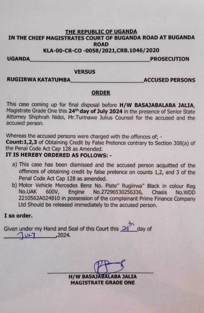 The prosecution contends that between September and November 2019, Katatumba obtained a sum of UGX 120 million from Prime Finance Company Limited, a financial institution located within Crane Chambers in Kampala. Rugiirwa Katatumba had promised to repay the loan with interest, but instead, he allegedly issued several cheques that bounced, leading to his failure to service the loan.