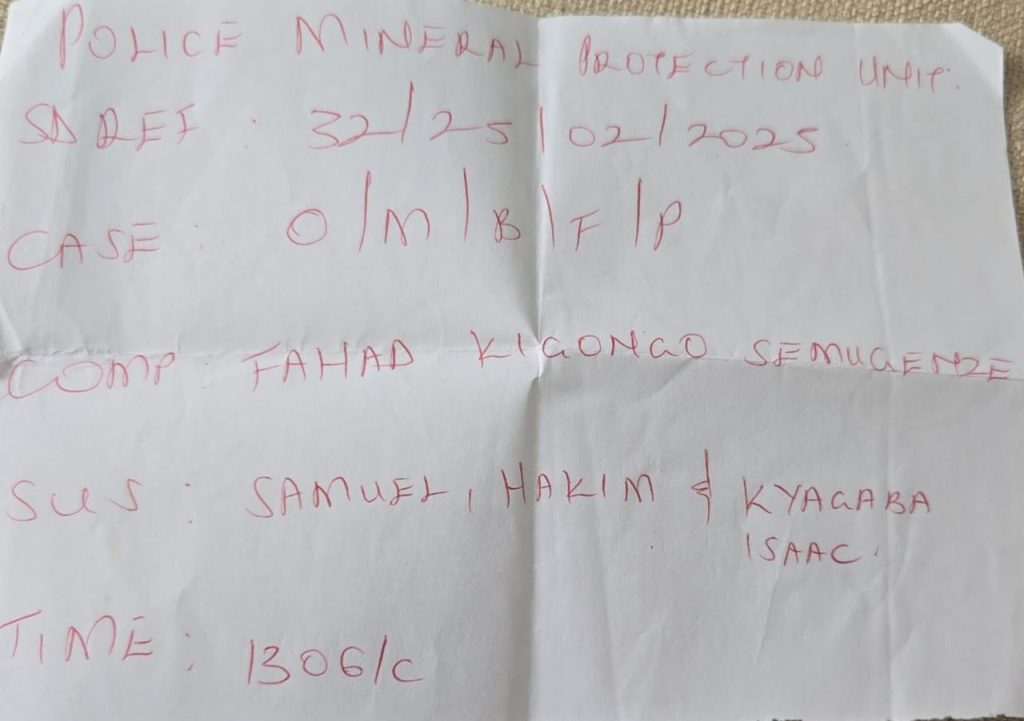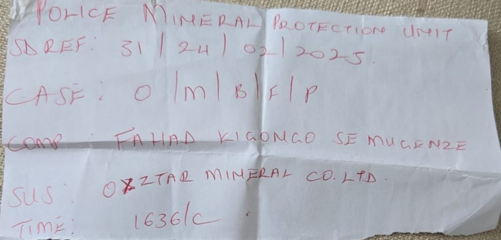 A complaint has been filed under SD REF: 32/25/02/2025 and SD REF: 31/24/02/2025. In the complaint, Kigongo not only accuses OYZTAR MINERALS CO. LTD and its directors of orchestrating the fraud but also calls for the immediate arrest of the company’s beneficiaries, along with individuals Samuel, Hakim, and lawyer Kyagaba.